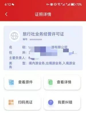 旅行社业务经营许可证电子证照 0 1 全国旅游监管服务平台