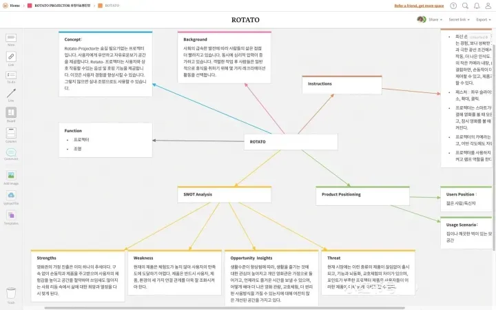 这个在线白板网站支持自由编辑思维导图,添加链接,保存清单,还可以直接在白板上书写内容,分享创意等,另外也能随意选择图形,将之放置在白板上,书写自己的创意~