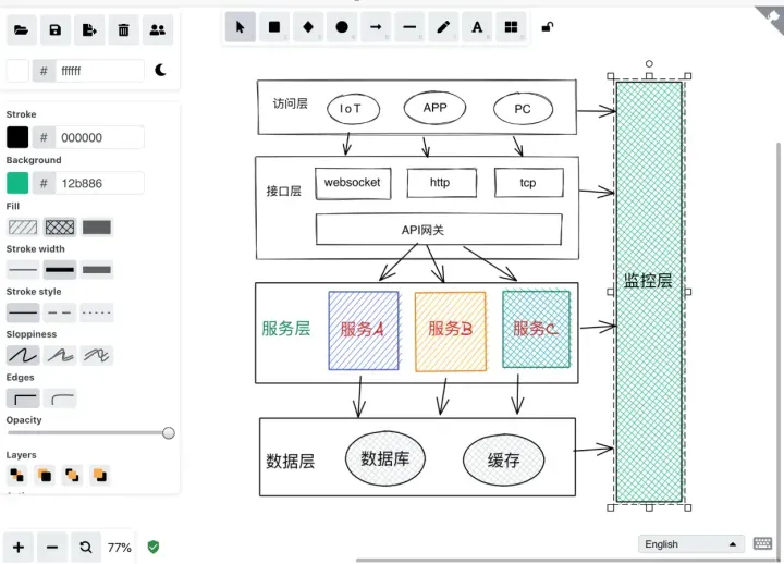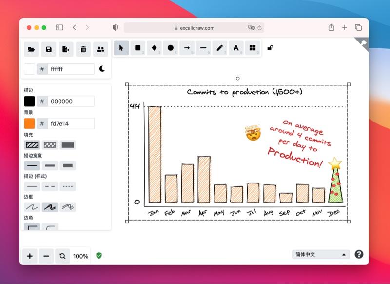 Excalidraw 是一款轻量的手绘风格电子白板在线应用,无论是 Windows / macOS / linux,甚至是手机,打开浏览器就能使用,能简单地画出美观漂亮的