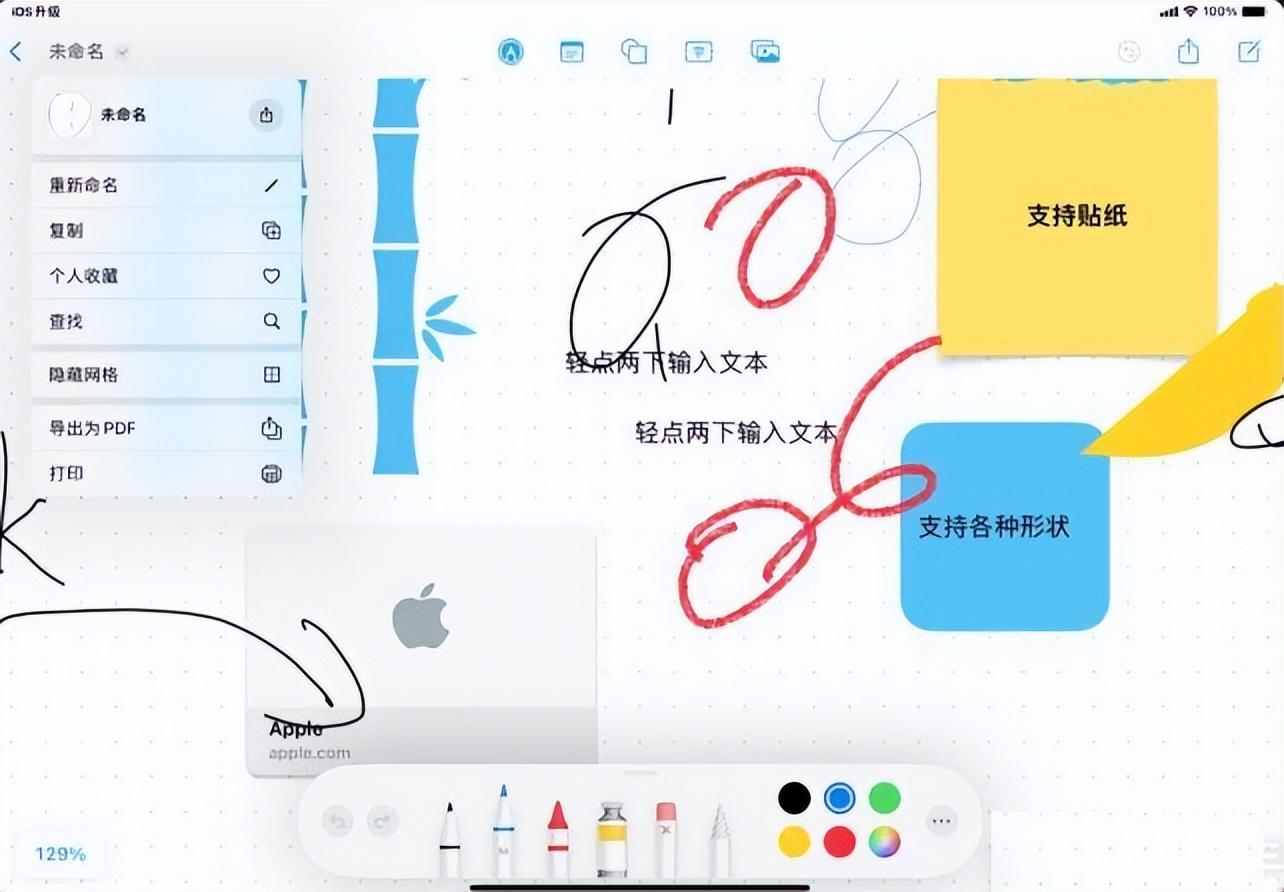 中文名译为无边记,是苹果推出的一款数字白板应用,支持实时协作,可以在iPhone 和 iPad中使用,功能简单又实用,顶部工具栏提供有画笔、便签、形状、文本和图片,对iPad来说更侧重手写功能~