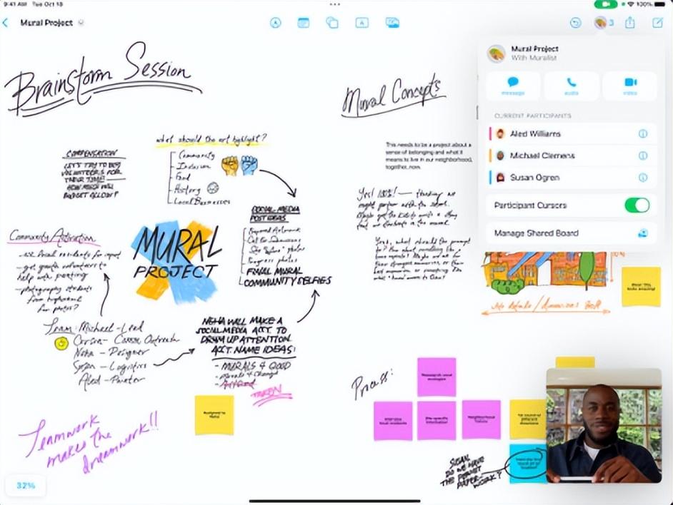 可以在分享页面中自定义分享出去的权限,也可以直接在无边记内打开 FaceTime,和协作用户直接开启远程会议模式~