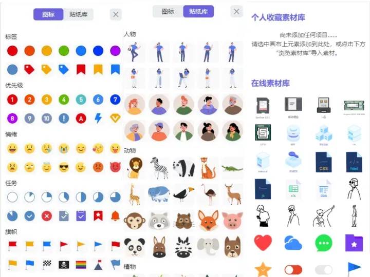 软件支持超大的素材库 ,贴纸库 和图标 ,还可以自己添加专属的个人收藏库 ,咱就是说使用起来真的是很棒~