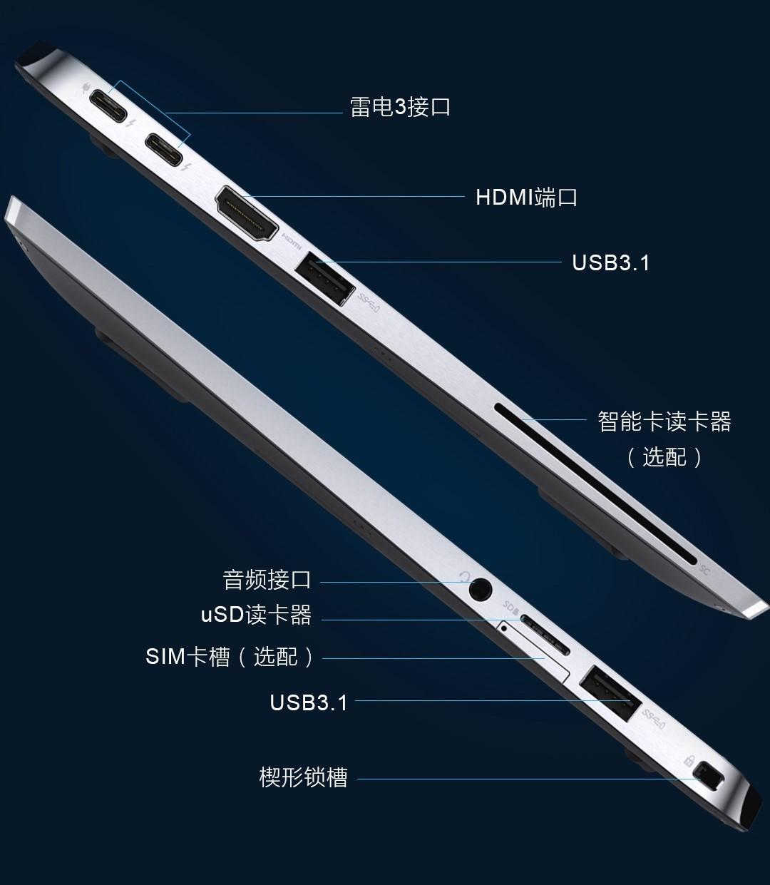 另一点值得称道的是,团队坚持提供多种 USB 3.1 A型和 Thunderbolt 3.0 C型接口,它们能够与新的 C 型接口解决方案兼容。机身上使用频率较高的接口也一应俱全,并没有因为体积而妥协。