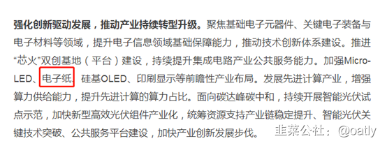 其中提到要加强电子纸 、Micro-LED等技术前瞻性产业布局。