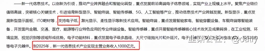 河南省洛阳市十四五规划和2035年远景目标纲要中提出,要重点支持电子纸等新型显示技术应用,到2025年,新一代信息技术产业实现主营业务收入1000亿元。
