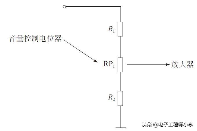 当RP1调到最上端时音量不能达到最大(相比于没有R1时的电路),因为电阻R1上存在一些信号电压降,达到限制最大音量的目的。