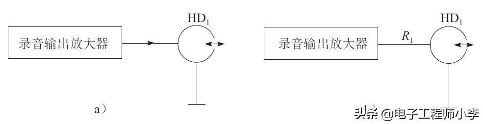 如图3-42所示为恒流录音电阻电路。其中R1是恒流录音电阻,HD1是录音磁头,从图中可以看出,它是录音输出放大器的负载。
