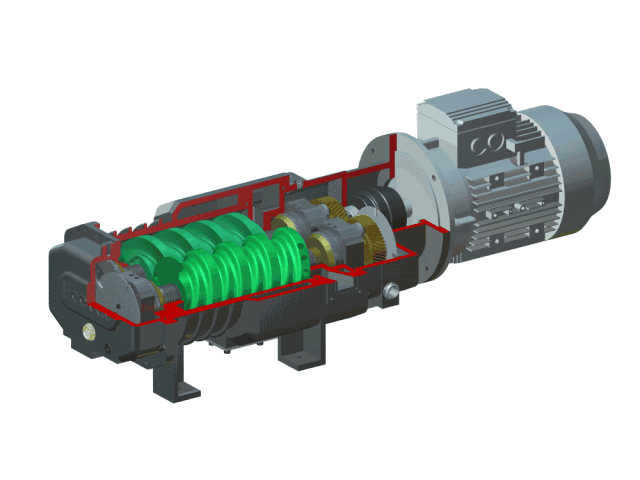 干式螺杆真空泵,是利用一对螺杆,在泵壳中作同步高速反向旋转而产生的吸气和排气作用的抽气设备。