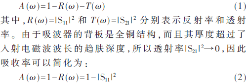 等效媒质理论[9-12]是常用的超材料吸波器的设计指导。吸波器的吸收率可以表示为: