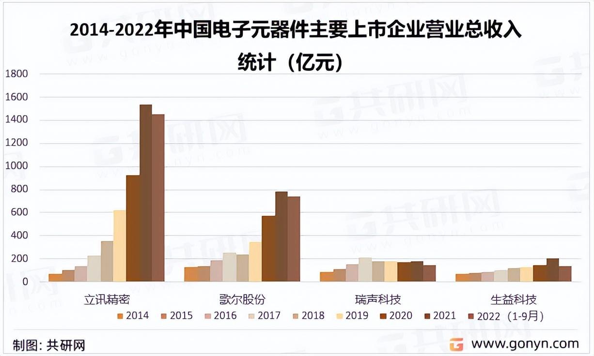 随着我国电子元器件市场应用范围的逐渐扩大,参与电子元器件行业的企业越来越多,推动了我国电子元器件市场的不断繁荣,目前我国电子元器件市场上市企业主要有立讯精密、歌尔股份、瑞声科技、生益科技等。