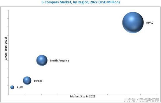 按地域细分,在2016年到2022年期间亚太地区有望成为市场的主导地区,其增速也位于各个地区之首。采购电子罗盘的消费电子生产商大部分集中在该地区,采用电子罗盘的便携式电子产品的需求量也持续上涨,这些都是亚太地区成为电子罗盘市场主导者的推动力。