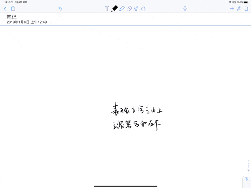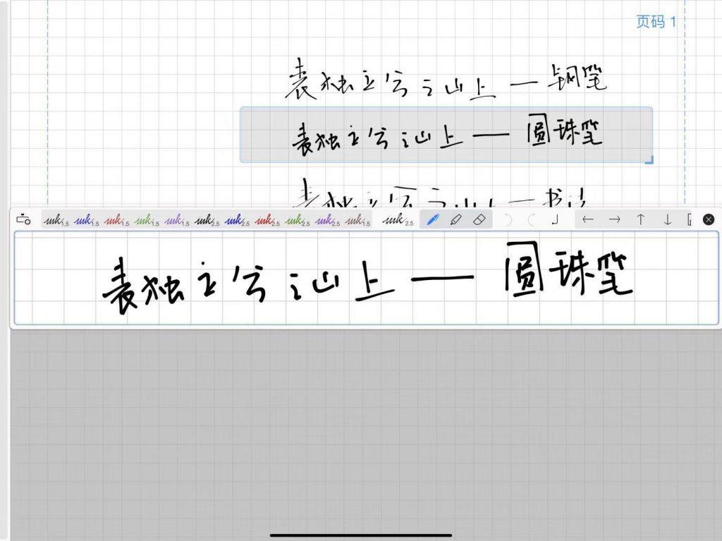 中间部分为书写功能按钮,《Noteshelf》中直线和规则图形不能通过写完停留来实现,需要点击形状工具再进行书写。