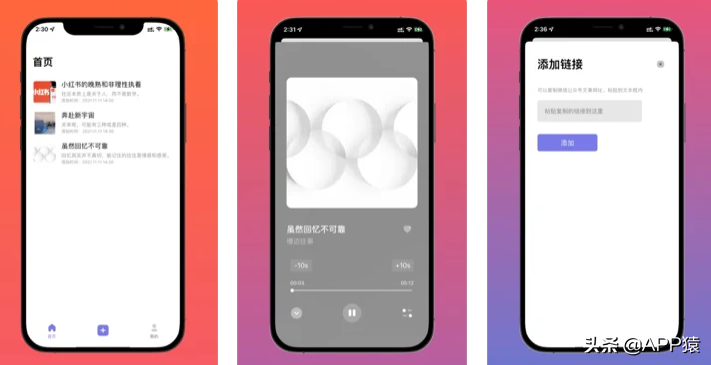 【Ting】是一款个人开发者做的可以将微信公众号文章链接解析后转换为音频,帮用户读出来,功能虽然简单而且设计相对比较简陋,不过对于平时有阅读固定公众号有时不方便阅读可以用它来转换音频播放。
