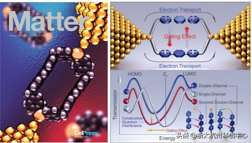 基于“量子干涉”原理,浙江大学杭州国际科创中心(以下简称科创中心)超分子新物质创制创新工坊青年人才卓越计划入选者陈洪亮研究员团队 设计了双通道带电大环单分子电路体系,用于构筑分子导体和绝缘体等分子器件,这一工作发表在《Matter》期刊上(Matter 2020 , 2, 378–389)。