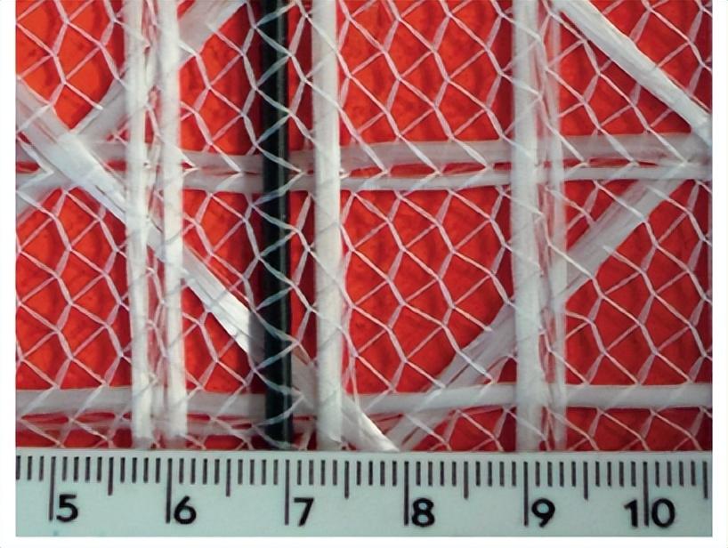 图4展示了意大利Alpe Adria Textil生产的一个MFG产品的示例。在这个特定的例子中,土工布结构是一个网格,由0°方向的经纱和90°方向的纬纱组成。