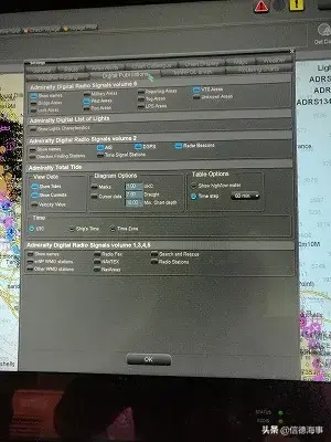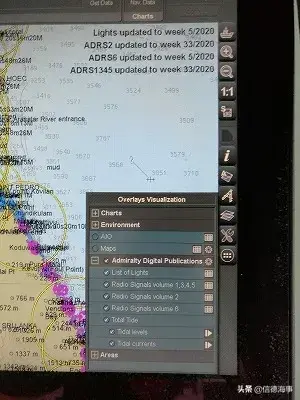 然后,在Overlay 界面中将所需的ADP进行打钩就可以在海图上叠加ADP的资料。点击相应的符号就可以看到所需要的航行资料。