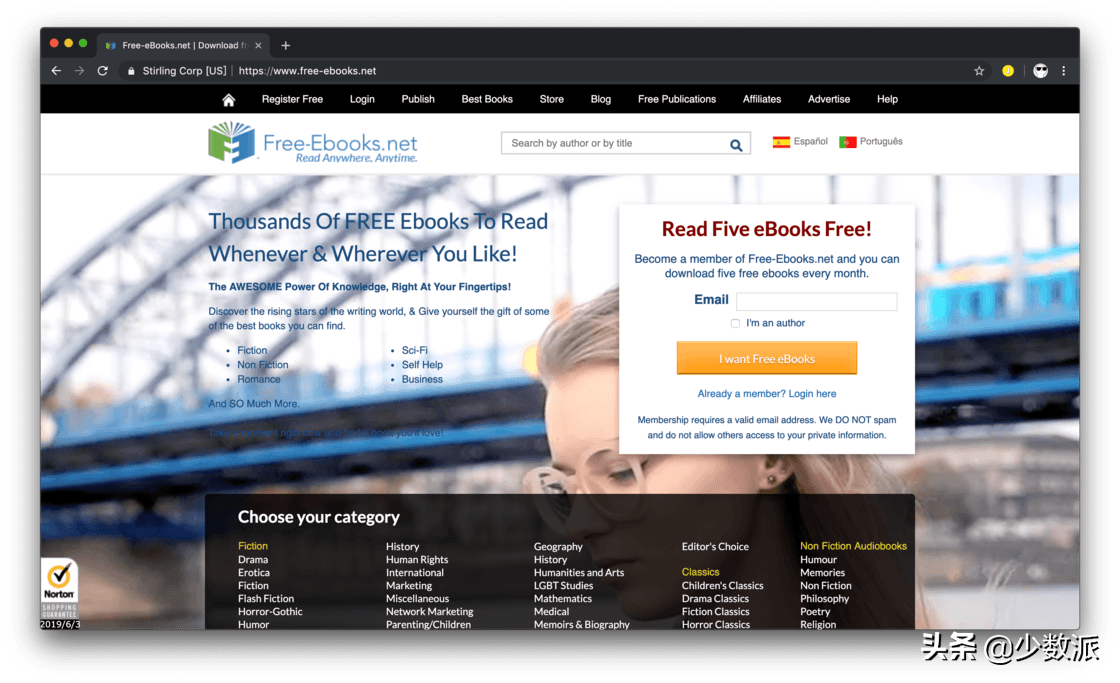 Free EBooks 也是一家电子书收录站点,虽然上面的电子书相对较新,但是需要注册才可以将电子书下载到本地。并且由于要防止被滥用,Free EBooks 每月每个账户只能下载五本电子书。