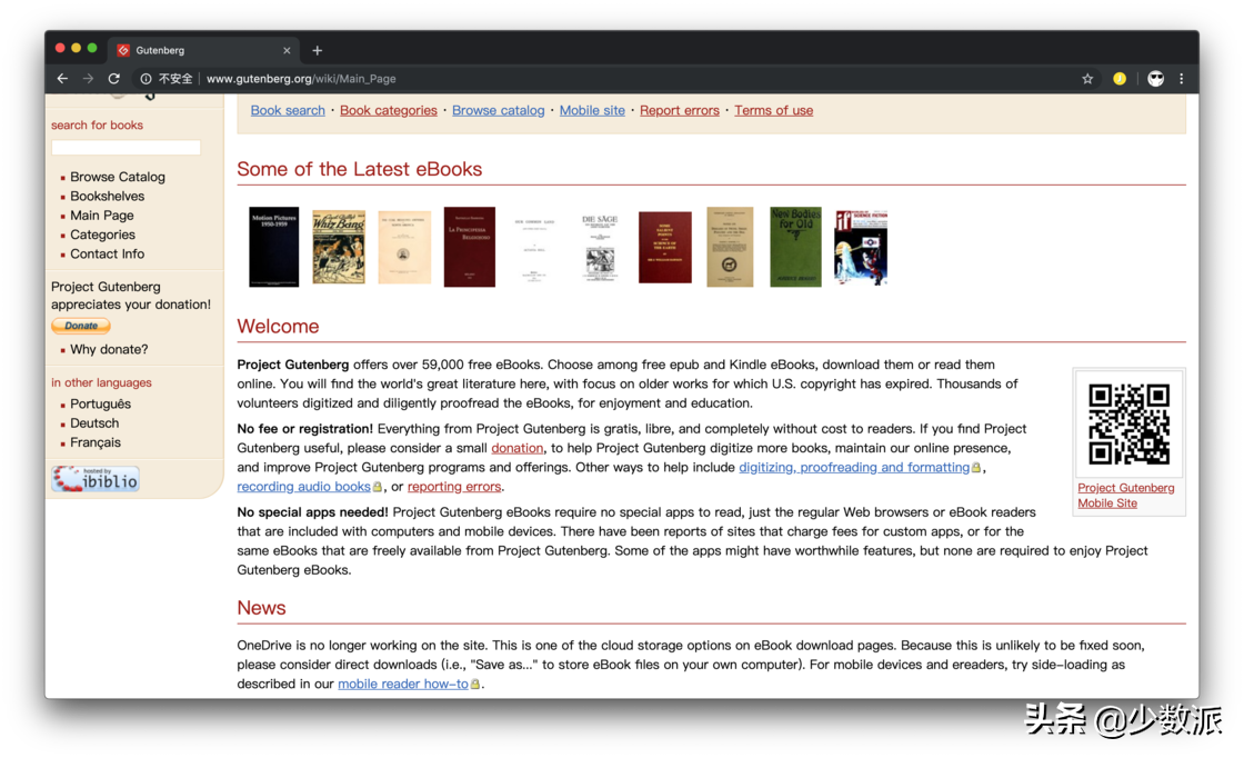 古登堡项目官网提供了多达 59000 本完全免费的电子书。同样,无需注册任何账户,只需要搜索我们想要的电子书,就可以从 Project Gutenberg 官网上面下载得到丰富的电子书资源。只是,由于版权问题,可能这里收录的内容都是相对过时的,教科书方面也需要花费一些精力才能找到我们想要的版本。