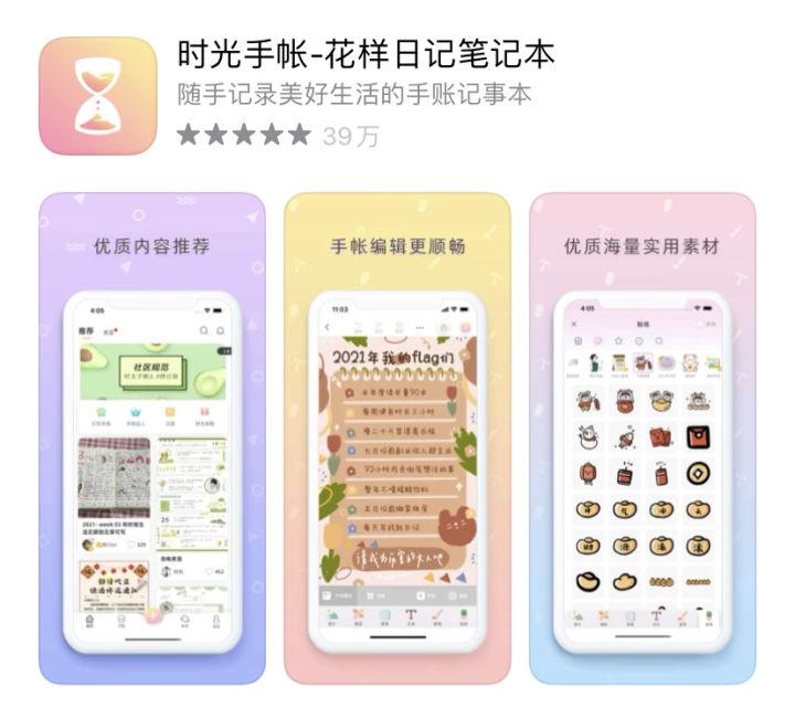 风格:有很多模板可以免费套用,有写便签和写手账两种功能,做手账足够用了。