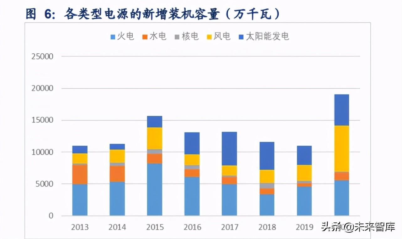 新能源在新增装机中的占比于 2017 年超过 50%,2020 年已达到 64%。 自 2017 年起,风电和太阳能发电 装机在所有新增装机中的占比分别为 52.3%、55.4%、49.8%、63.8%。需要说明的是,此处每年新增装机 为当年与上一年装机之差,实为净增装机,但由于退役装机较少,对上述结论影响非常有限。