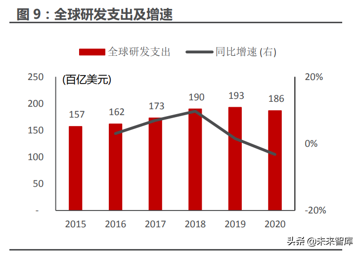 我们认为下游应用行业研发需求将仍然保持增长趋势。根据欧盟委员会发布 的《2021 年欧盟产业研发投入记分牌》1,2020 年,全球研发投入增长约 6%(我 国增长 18.1%,美国增长 9.1%)。疫情虽使部分行业研发预算承压,但高技术行 业研发需求仍较为强劲。全球研发增长主要由信息通信 ICT 服务(15.5%)推动, 其次是健康(12.8%)和 ICT 生产(5.7%)。受疫情影响,部分产业的研发投资都 出现了下降:航空航天与国防(-17.0%)、汽车(-4.3%)、化工(-3.4%)。