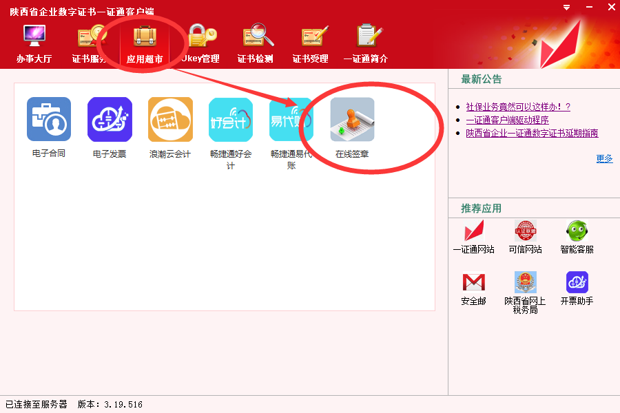 企业可以使用办理的陕西CA证书,其中包含的电子签名签章服务就可以实现!小C这里随意找一项政务业务示范一下,大家就可以清晰了解,使用电子签名签章有多么方便快捷!