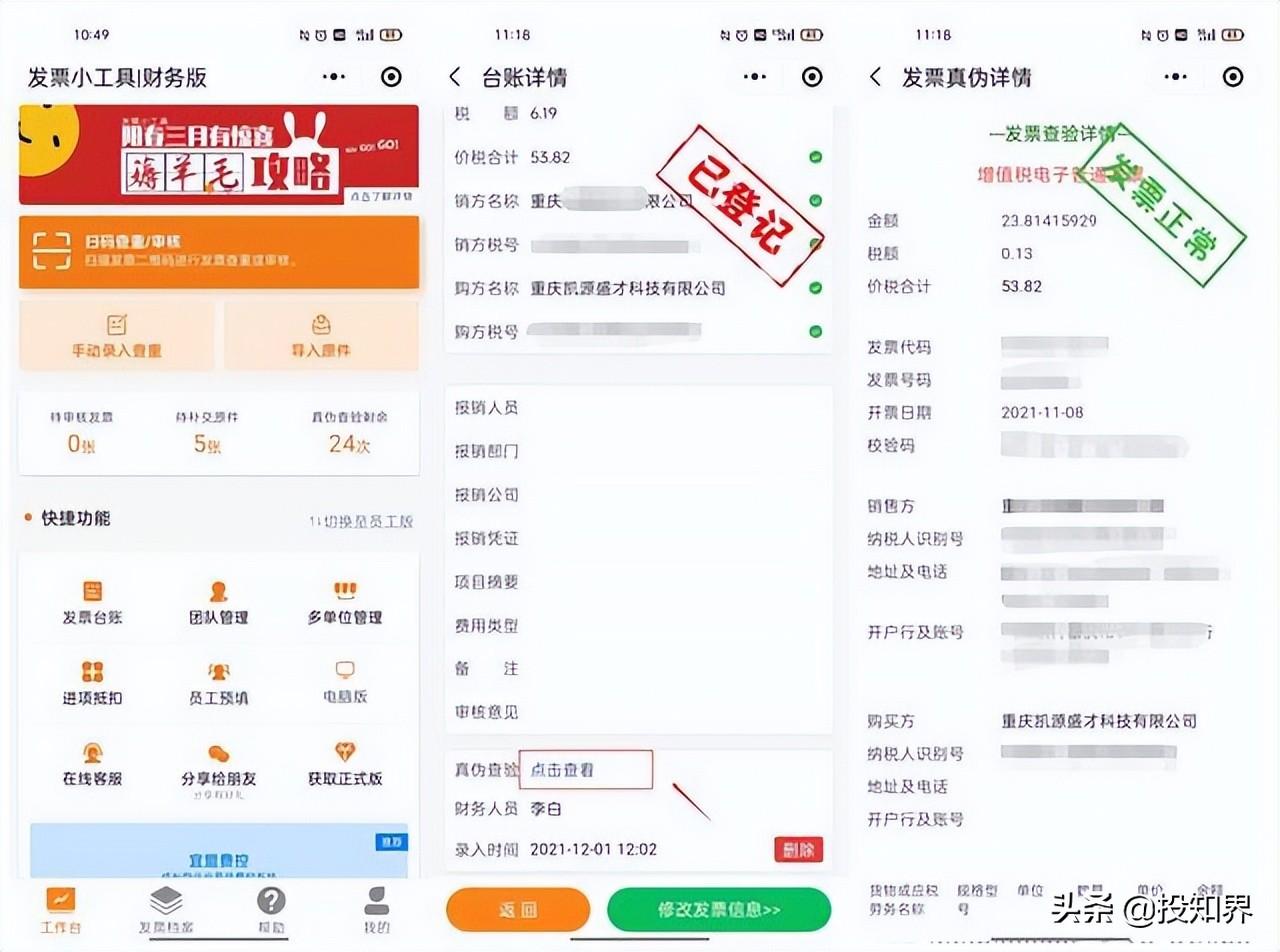 有两种查重方式:一是会计拿到员工提交的发票直接用《发票小工具》的扫码审核功能,扫描发票上的二维码进行查重;