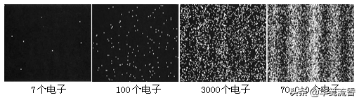 让电子一颗一颗的通过双缝。并且,当前个电子打在靶板上成像的时候,第2个电子才发射。最开始打在靶板上,只是一个一个的点,这表明了电子的粒子性。只要积累足够长的时间,成像靶板上仍然会出现明暗相间的干涉条纹。这表明了电子的波动性。