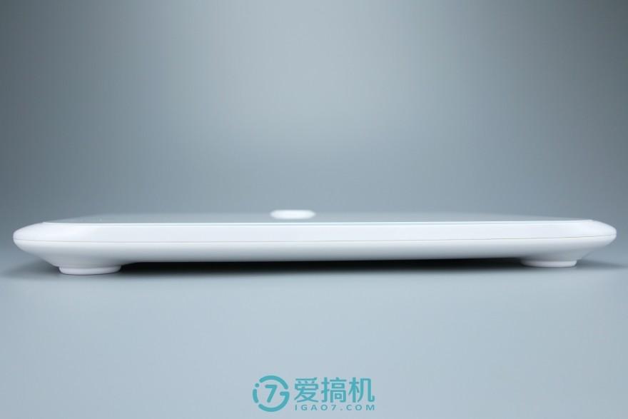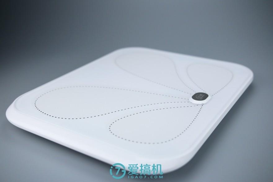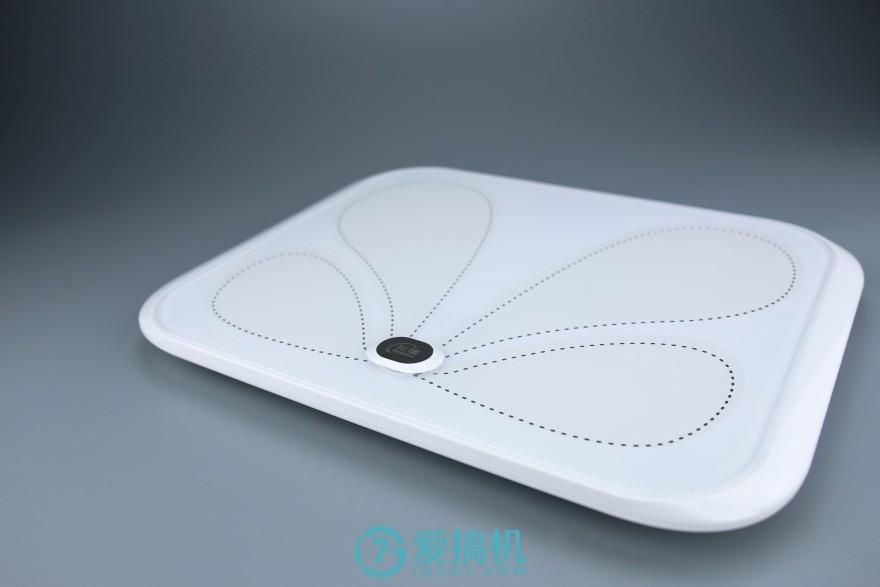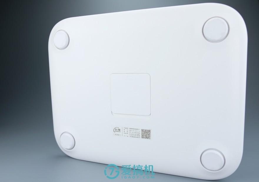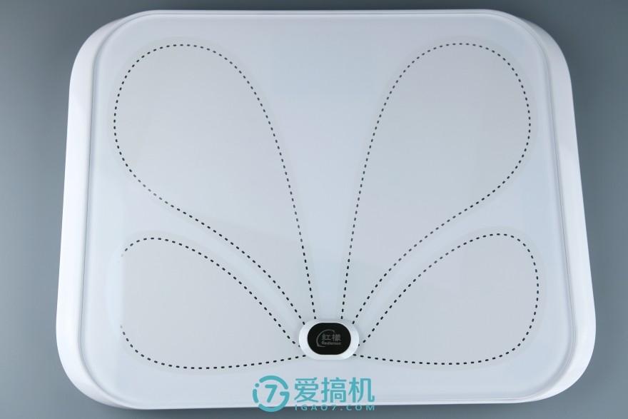 在这块玻璃下,印有一个类似蝴蝶翅膀的设计点缀,这是因为它采用了 ITO 导电镀膜的工艺,比起传统的金属片承载电极(市面上大多数产品也是采用该工艺),在成本上要高出不少。并且红檬 X1 采用了超白钢化玻璃,称面在耐用度和强度上也更佳,这些都是提升了成本的地方所在,可见用料之厚道。手机等数码产品强调手感,而体重秤则是脚感,而当笔者踩上去时,感觉的确还不错,比那些普通的产品要好是一定的,毕竟定位高端。