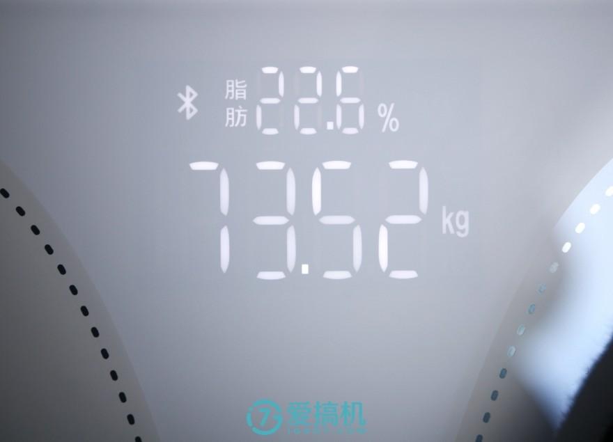 (LED 显示面积十分可观,屏幕上只能显示体重和脂肪率,剩余数据需在手机 App 上查看)