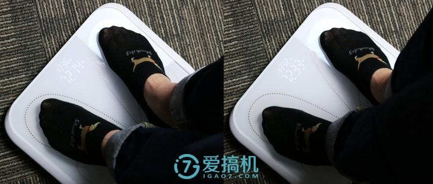 笔者现在做了一个测试,首先站在 X1 体脂称上得出数据 72.14kg;然后第二次检测在笔者手上多了一部 iPhone 6s Plus,得出数据为 72.33kg,而该手机的重量为 192g,可以看出,X1 精准地显示了在增加手机之后的体重(72.33-72.14=0.19≈190g),可见测量精度之高。