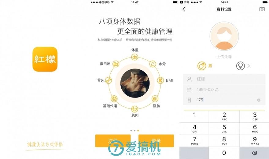 既然是智能硬件,那么当然少不了智能这部分,通过手机上的 App(在 iPhone 或安卓应用市场搜索“红檬”下载即可)能够与红檬 X1 体脂称进行互联。