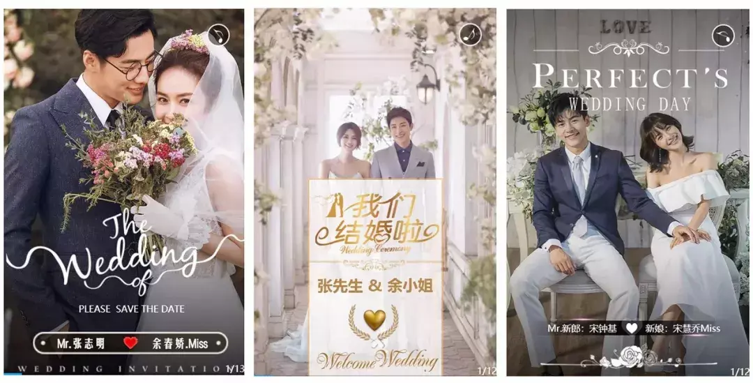 下载后,直接进入“婚礼”版块,接下来,到底选哪一个模板,估计都会挑花眼。