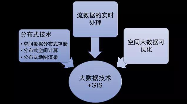 大数据GIS就是把大数据技术与GIS技术进行深度融合,把GIS的核心能力嵌入到大数据基础框架之内,并打造出完整的大数据GIS技术体系。大数据GIS的核心技术如下图所示: