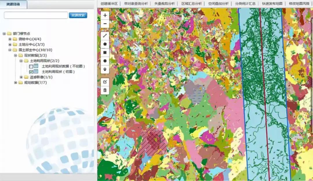 资源的清查、管理与分析是GIS应用最广泛且趋于成熟的应用领域,也是GIS最基本的职能,包括土地资源、森林资源和矿产资源的清查、管理,土地利用规划、野生动植物保护等。