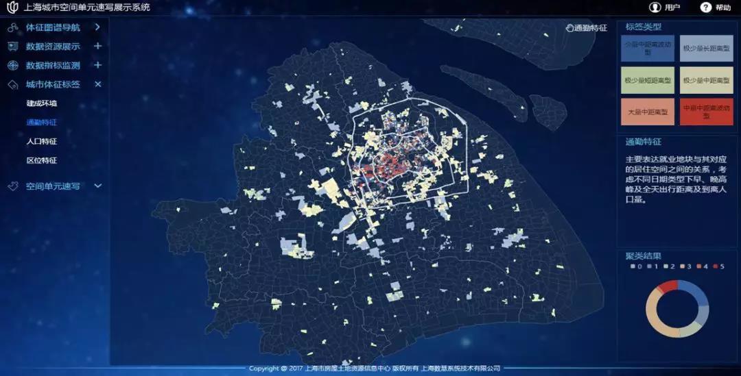 城市规划是典型的业务驱动型应用大数据GIS的行业。在没有大数据GIS之前,城市规划所依赖的数据资料往往时效性差、粒度粗,很多时候就只能“拍脑袋”。有了大数据GIS的帮助,才能知道人口分布、职住关系等真实且实时的城市运行面貌,为规划师制定方案提供全面的视角空间和量化依据。规划师能够从人口、就业、岗位、用地、公共服务、交通、通勤和休闲等角度对职住关系进行诠释,而不单单局限于“职住平衡”指数。如图3所示上海城市空间单元画像速写展示系统,利用就业地块与居住地块之间的关系,可分析城市的通勤关系并制定改善措施。
