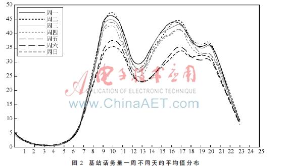 基站话务量总体平均值分布如图1所示,其在一周不同天的平均值分布如图2所示。