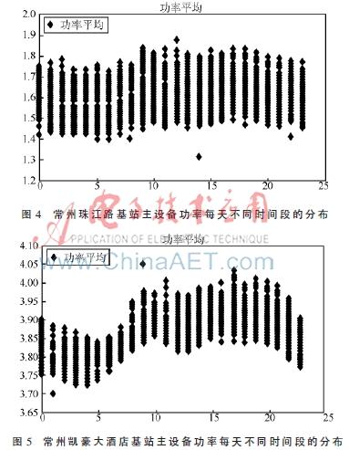 对采集的通信主设备功率在一天不同时间段的变化做了统计,如图4和图5所示。