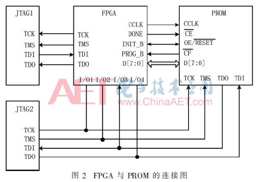 FPGA和PROM、JTAG的具体连接关系见图2。