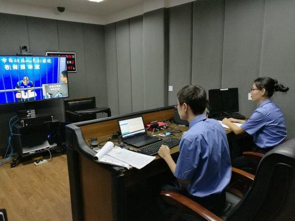 检察官正运用智能语音识别系统进行远程提审
