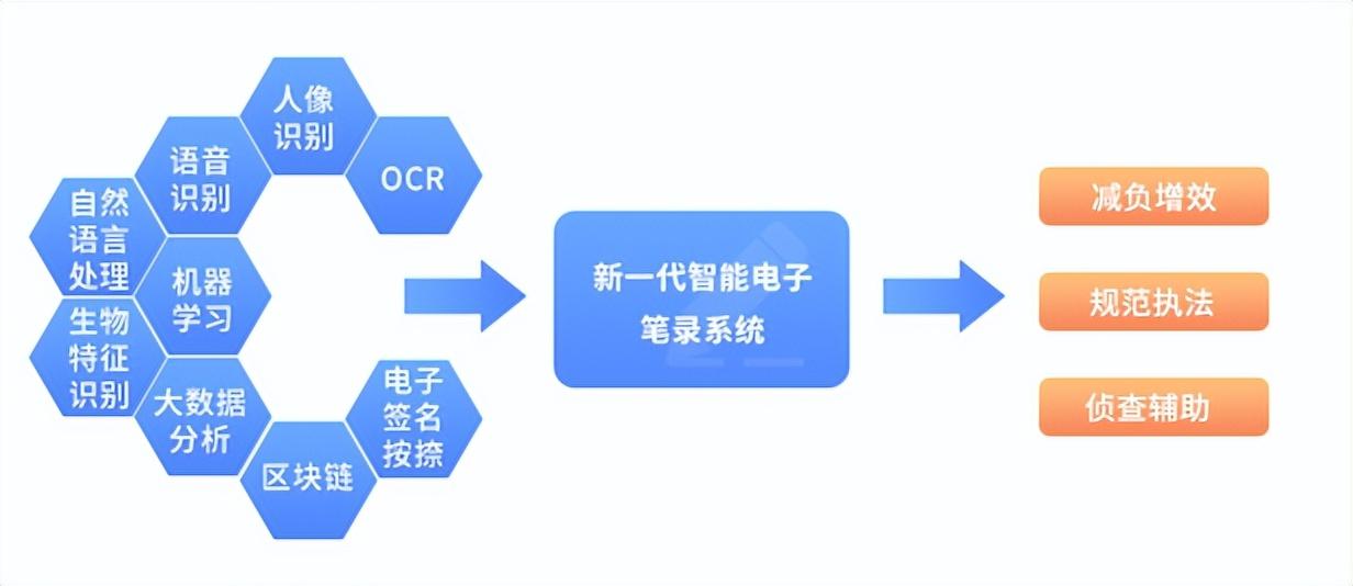 系统具有快捷笔录、群体性案件协同问话、专家远程指导侦查、笔录过程监督、案件关键线索提取、自动核查、联盟核查、交叉分析等功能,支持多版本电子签名按捺设备对接,实现笔录文书电子化。