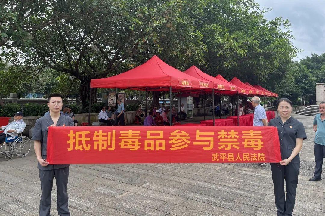 6月26日,国际禁毒日当天,龙岩两级法院开展禁毒普法宣传教育活动。通过设置普法摊点发放禁毒宣传手册、禁毒知识有奖问答、庭审观摩等形式,提高公众特别是青少年防范毒品侵害的能力,努力营造全民抵制毒品、全民参与禁毒的社会氛围。