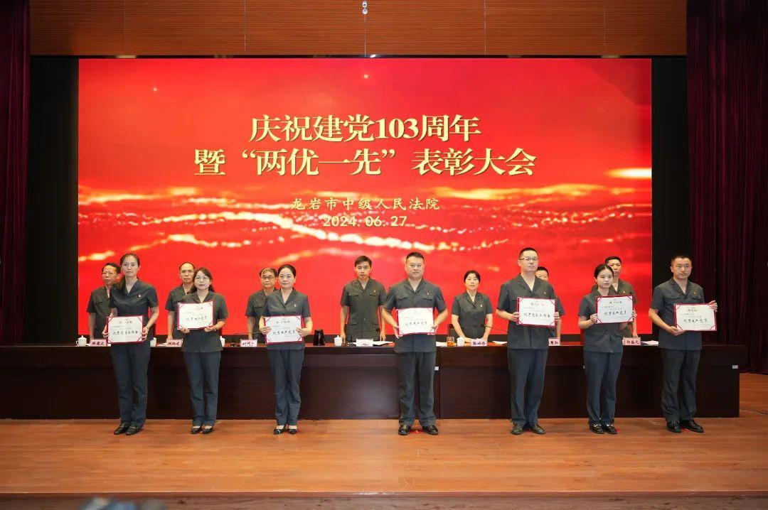 龙岩中院召开庆祝建党103周年“两优一先”表彰大会暨党纪学习教育专题党课