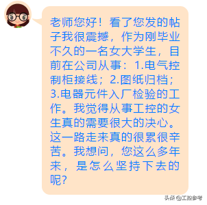 最近坛友yllas收到一位刚毕业不久的女生的来信,信里阐述了自己从事工控行业的困惑,希望能得到yllas的帮助。