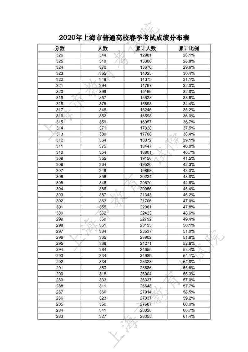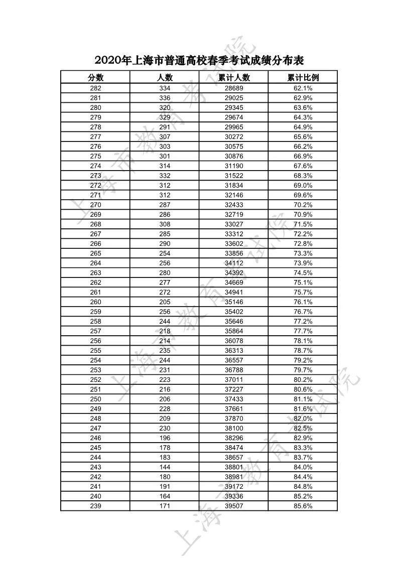 经市教委审定,2020年上海市普通高校春季考试招生志愿填报最低成绩控制线为:262分。