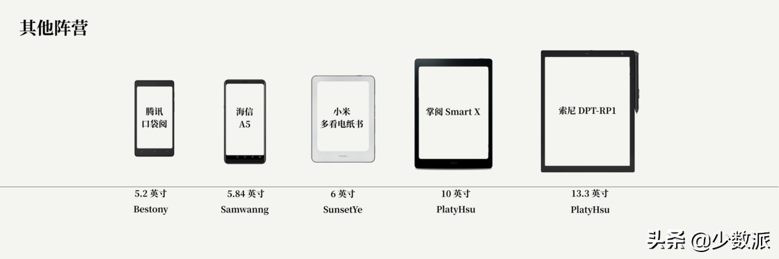 @机器人:先来介绍一下今天参赛的九位选手,具体见下图。需要提前说明的是,这次是在作者群中随意收集拥有安卓电纸书的作者,并没有刻意挑选品牌,但最后的结果似乎也能一定程度上反映各家的市场占有情况……