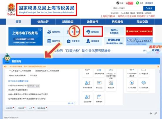 方式二:上海市税务局官网(http://shanghai.chinatax.gov.cn),点击【我要咨询】进入智能咨询。