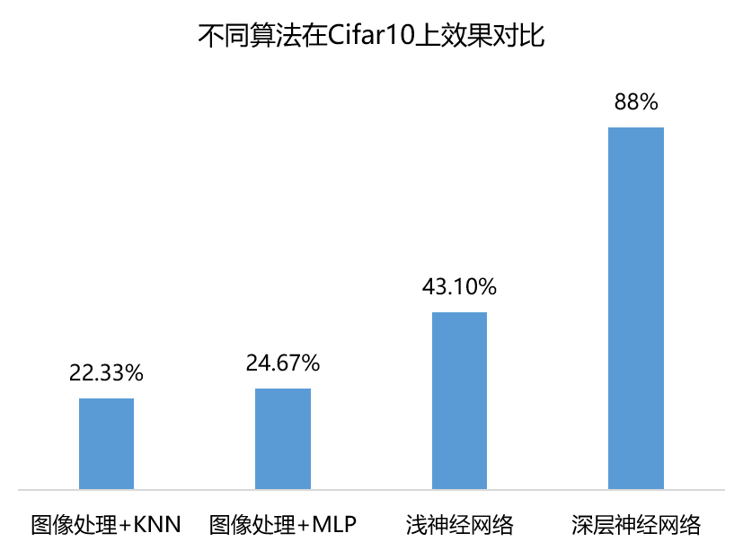 ▲图1-2b 传统图像处理方法与深度学习方法在Cifar10数据集上的效果对比