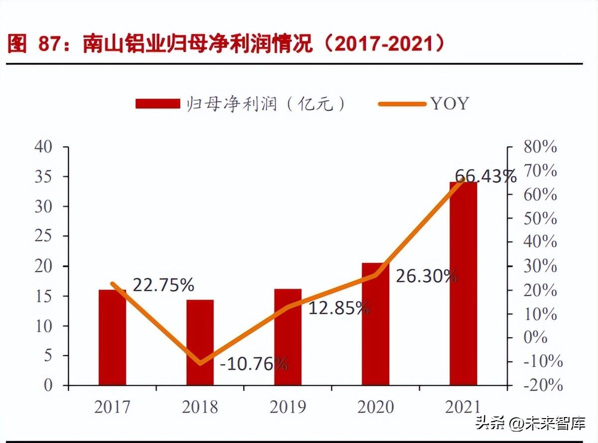 依托完整产业链优势,着力发展高端产品。公司已形成从热电-氧化铝-电解铝-熔铸- (铝型材/热轧-冷轧-箔轧/锻压)完整的铝产业链生产线,主要产品包括上游产品电力、氧 化铝、铝合金锭,下游产品涵盖挤压材、压延材和锻造件等多个产品类型,主要用于加工 航空板、汽车板、新能源车用铝材、高速列车、动力电池箔、食品软包装、罐料等。其中 公司重点发展以汽车板、航空板、动力电池箔等为代表的高附加值产品,高端产品销量占 公司铝产品总销量的 12.66%,同比增长 6.7%;毛利贡献达 19.89%,同比增长 6.62%。未 来随着高端产品的产能释放,该部分利润贡献将会进一步提升。