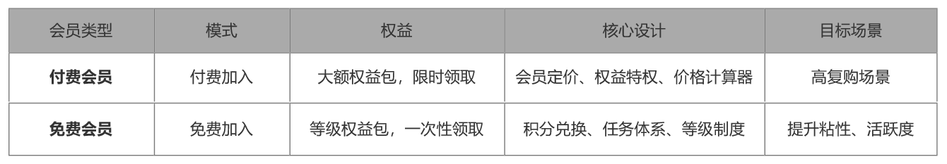 以免费会员与付费会员为例,我们探讨一下常见的会员产品设计思路。